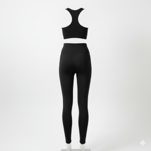 Bottoms: High-waisted compression leggings featuring a "butt-lifting" or scrunch design to enhance shape and definition. They are constructed with a thick, supportive waistband and a seamless fabric for comfort and flexibility.