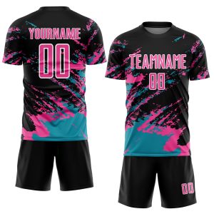 Black Pink-Teal Abstract Fragment Art Soccer Uniform