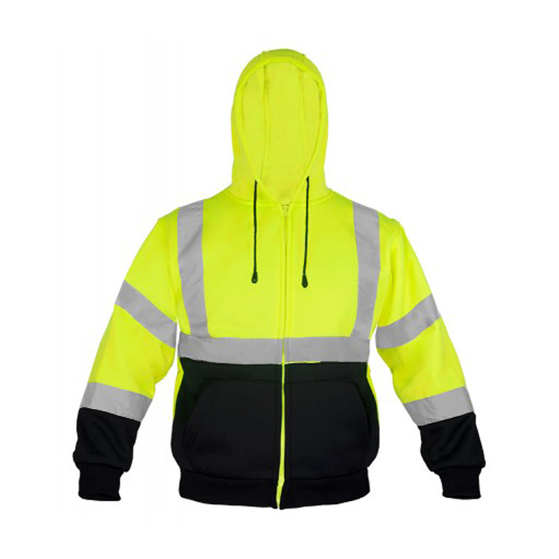 Description: Hooded pullover sweatshirt100 % polyesterZipper closureWith reflective stripesSizes: S,M,L,XL,XXL,XXXL